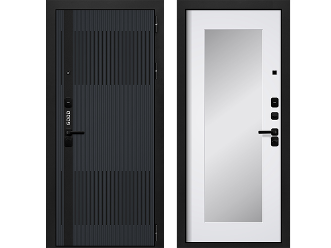Входные двери Гуд 2 Черный муар, Графит шагрень - Веллуто Бьянко по выгодной цене 50700 ₽ в Барнауле можно купить в магазине Дом Дверей.