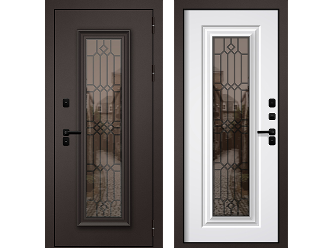 Входные двери ЗИМА 501 Муар коричневый - Веллуто Бйянко (термо)