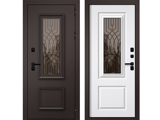Входные двери ЗИМА 502 Муар коричневый - Веллуто Бйянко (термо)